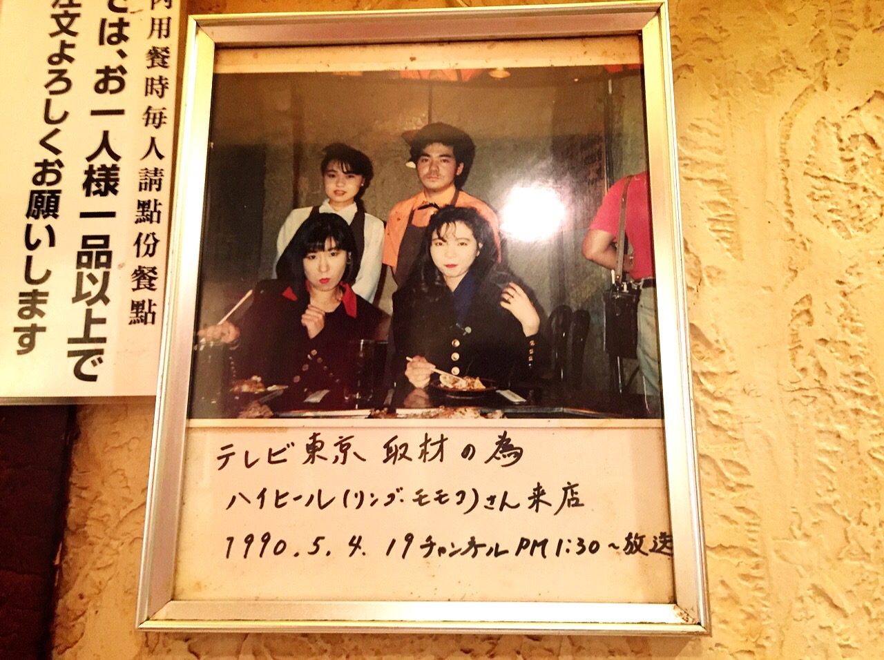 通された席の壁にはハイヒールのお姉様方の若かれし頃。