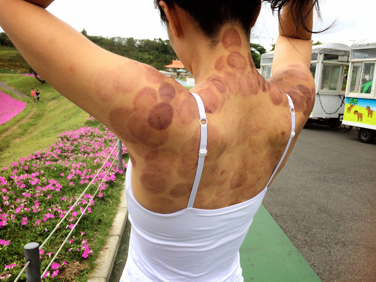 Blog マザー牧場で大騒ぎ! 2014年8月24日 佐久間 涼子 コメントする お昼ころから、マザー牧場へ! 酵素ドリンクを持って、準備万端でマザー牧場に向かう。 ソフトクリームを食べないように! BBQのにおいにやられないように! 心強く、入場*\(^o^)/* 美幸ちゃん、私もテンションアップ。 でもね! でもね。 でもね…、問題が。 楽しそうに見える写真の裏には… 背中が吸い玉まみれ〜(´Д` ) みんなにもジロジロ見られ、子供には怖がられ、大変なマザー牧場散歩の始まり始まり〜